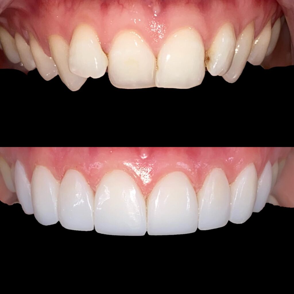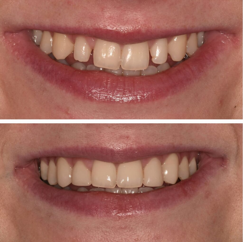A 17-year-old student was unhappy with her smile after braces, noticing “gaps” due to smaller lateral incisors. She wanted a conservative solution that preserved her natural tooth structure.