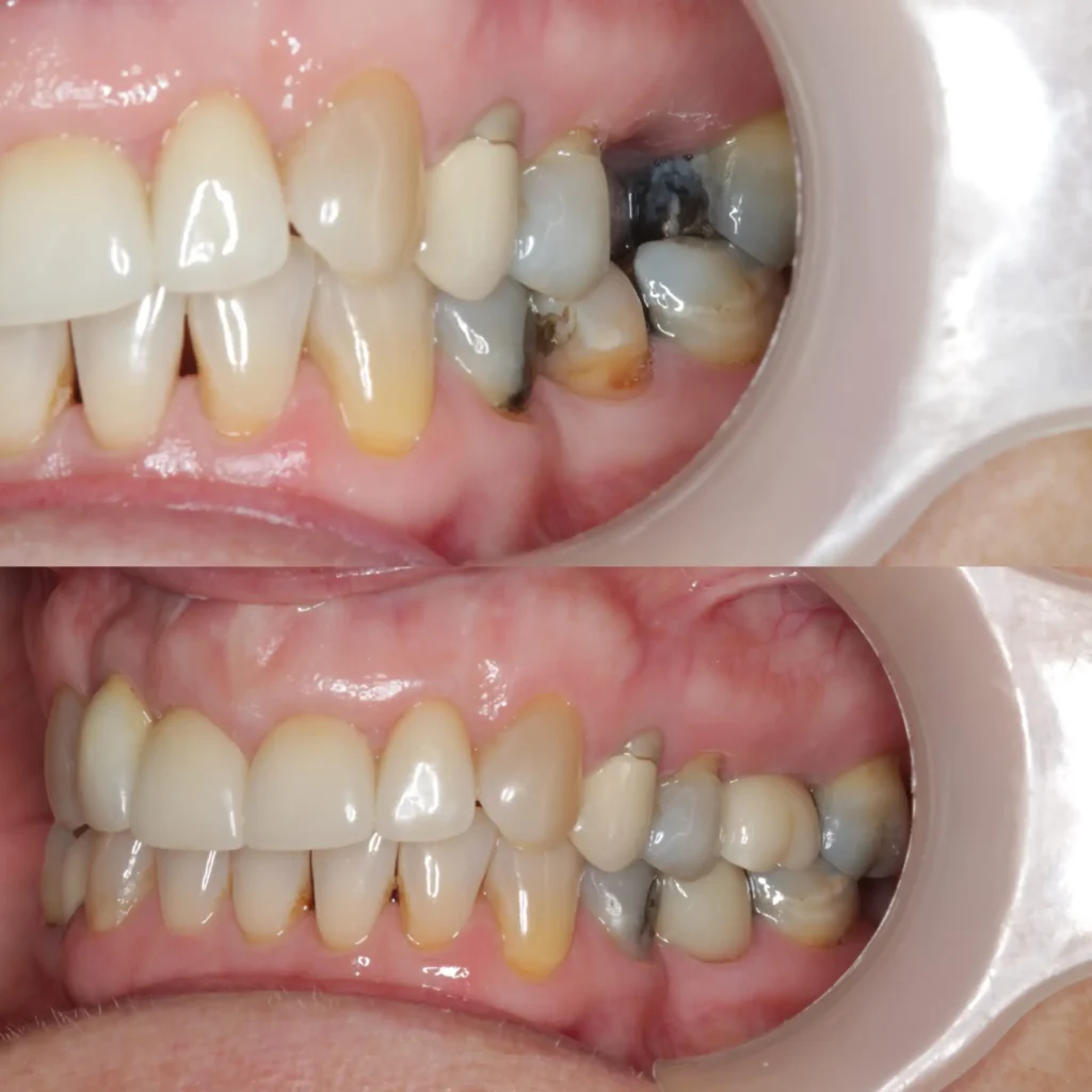 A titanium post is carefully positioned into your jawbone under local anaesthetic. Some mild bruising is normal and can be managed with simple pain relief. The implant is then left to heal for around 6–8 weeks.